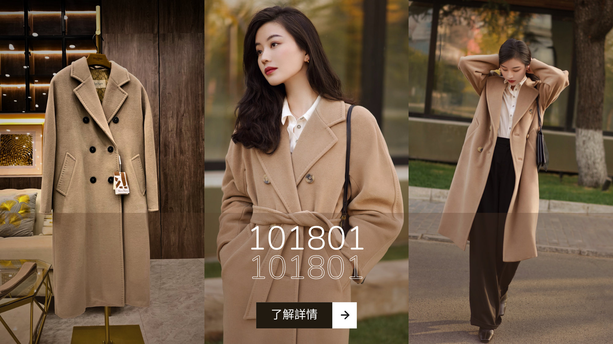 MAX&Co.羊毛混紡牛角扣粗呢大衣