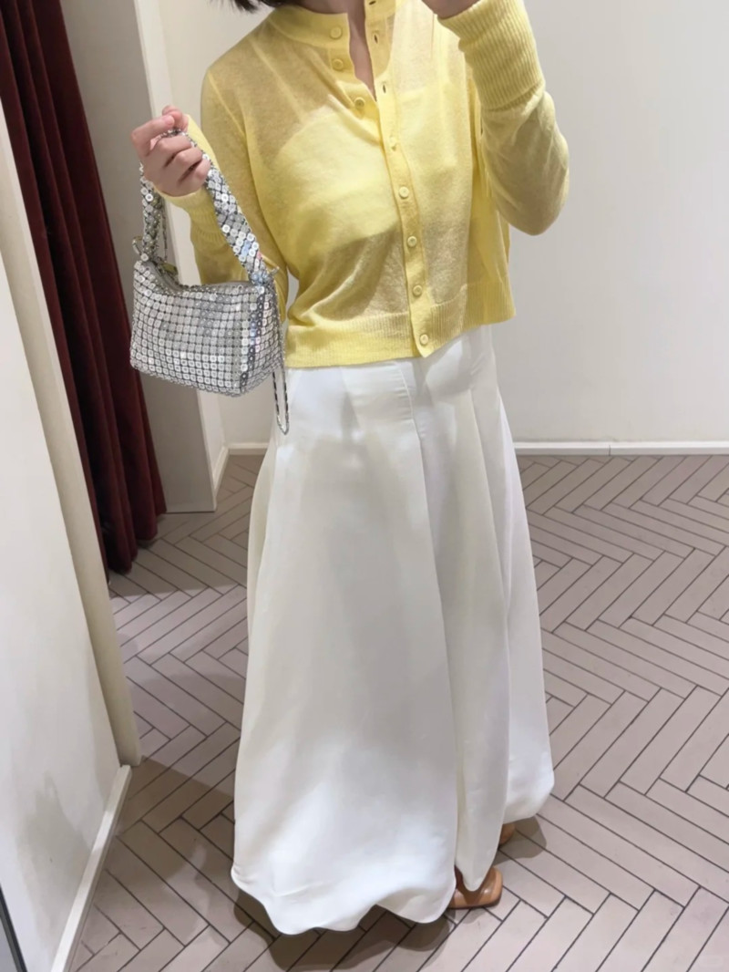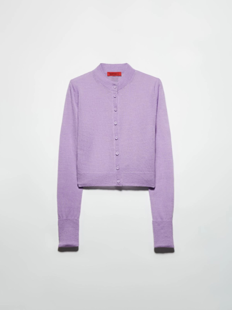 這款輕盈柔軟的時尚開襟衫,採用柔和色調,是換季疊穿的理想之選。 羊毛和羊駝毛混紡,略呈圓弧形的下擺,前短後長。 針織包布紐扣,背面飾有MAX&Co.提花徽標貼片。 短版版型,有同系列配套毛衣。 主體紗線至少含有 50% 來自受監管的、動物友善農場的纖維。