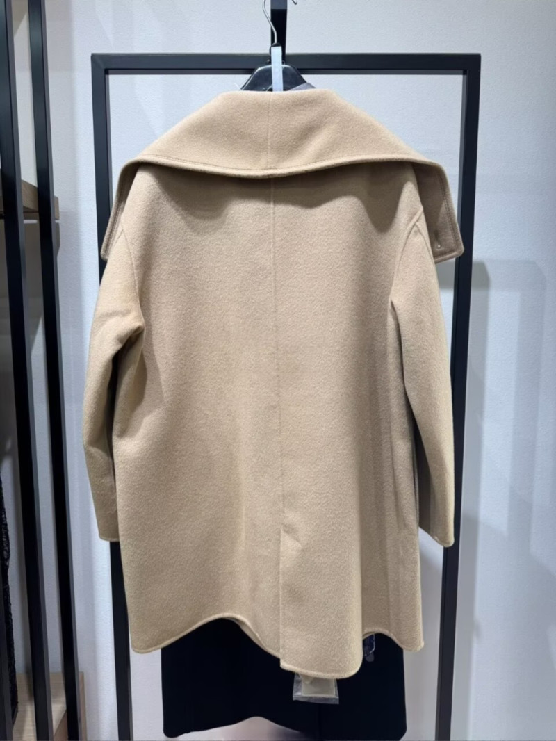 這款純雙層羊毛大衣採用優質面料和簡潔設計,既可隨意穿著,也可繫上腰帶,展現優雅氣質。