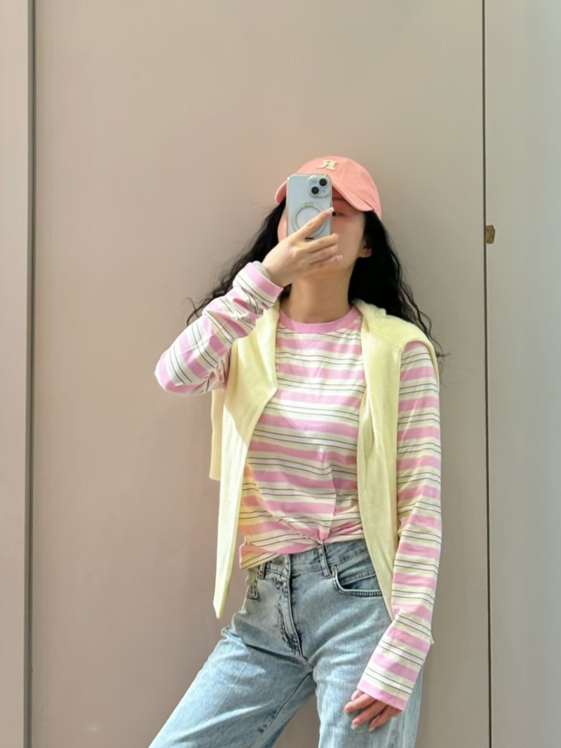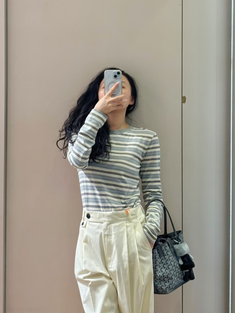 想要為素雅的穿搭增添亮點? 不妨試試這款條紋T卹,簡單又省事。 主要布料至少含50%有機纖維。