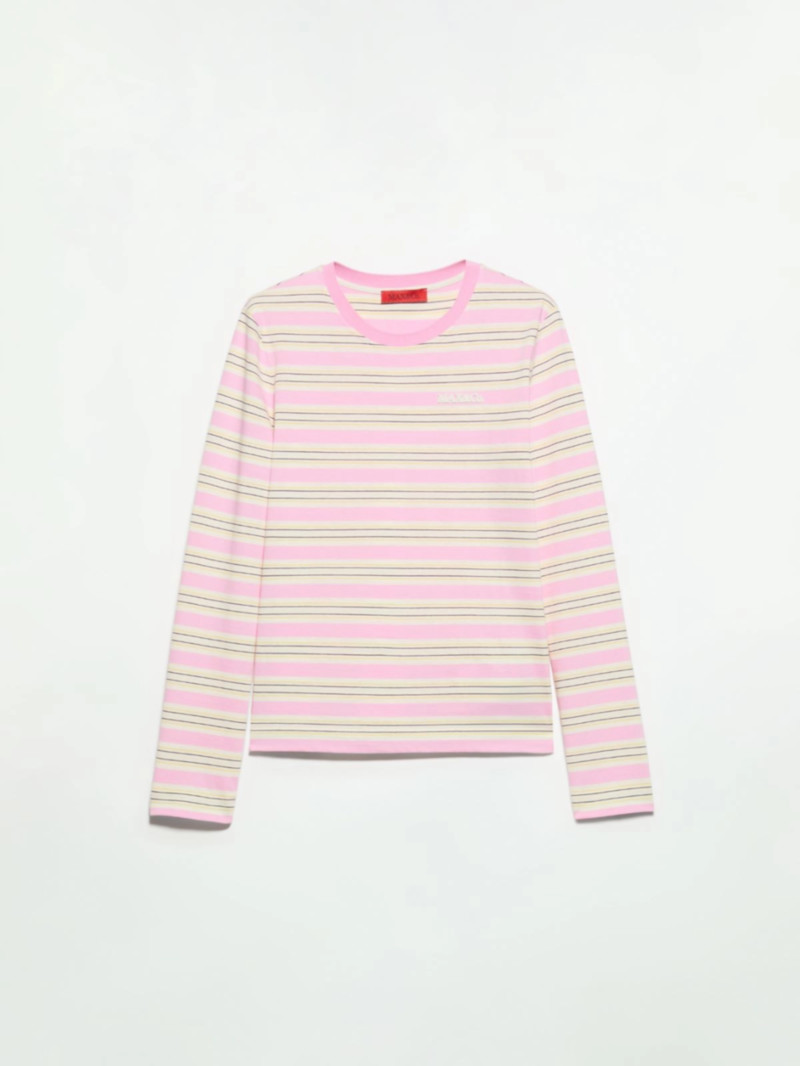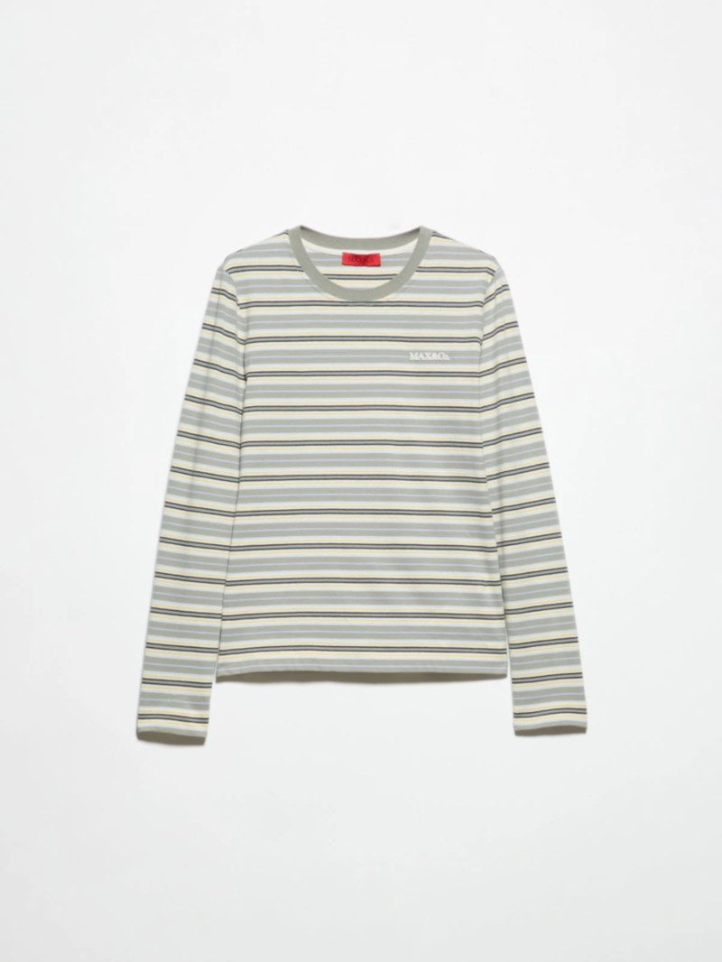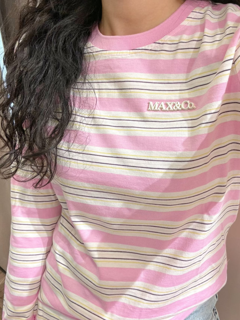 輕盈棉質針織布料,羅紋圓領,長袖。 正面飾MAX&Co.壓花橡膠logo,修身剪裁。