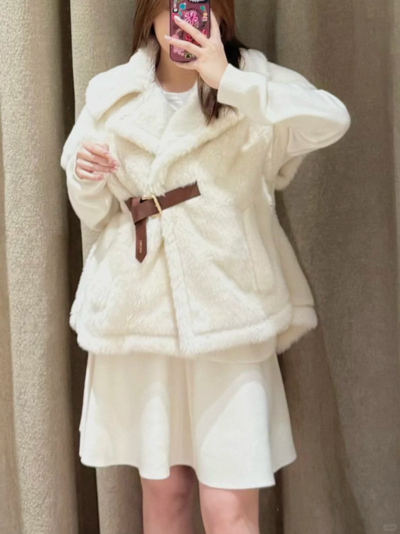 MaxMara經典款羊駝毛羊毛泰迪熊披肩外套