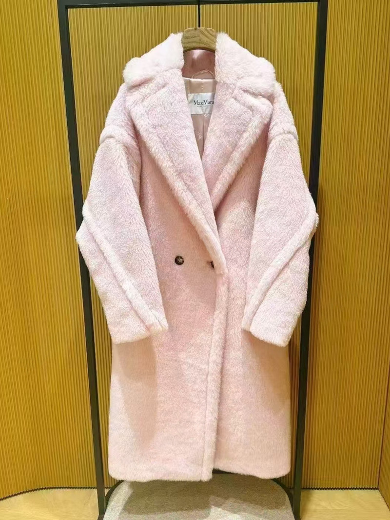泰迪熊大衣於 2013 年設計,靈感來自 80 年代的經典單品,憑藉著魅力與俏皮的完美煉金術組合,立即成為明星和名媛喜愛的大衣。 其獨特人造毛皮是以絲綢為基底,採用羊駝毛和羊毛混紡技術的成果,由義大利創意團隊開發。 大衣的豐盈體積彰顯了款式的絢麗奢華。長度 110cm/4.3 英寸。