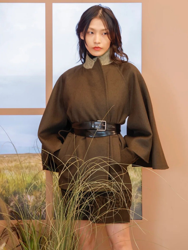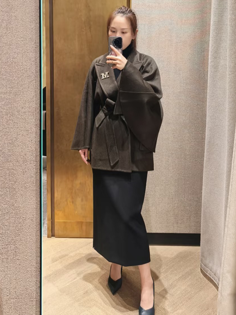 MaxMara秀款駝絨寬袖短裹身大衣
