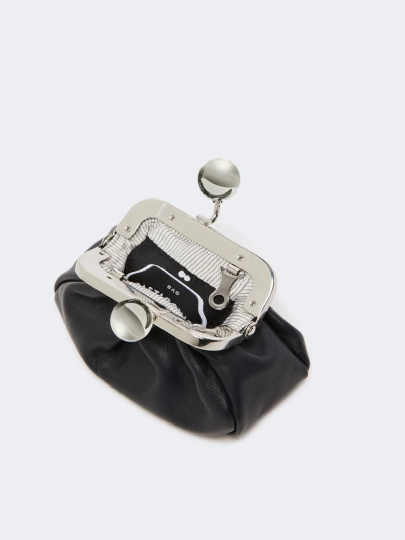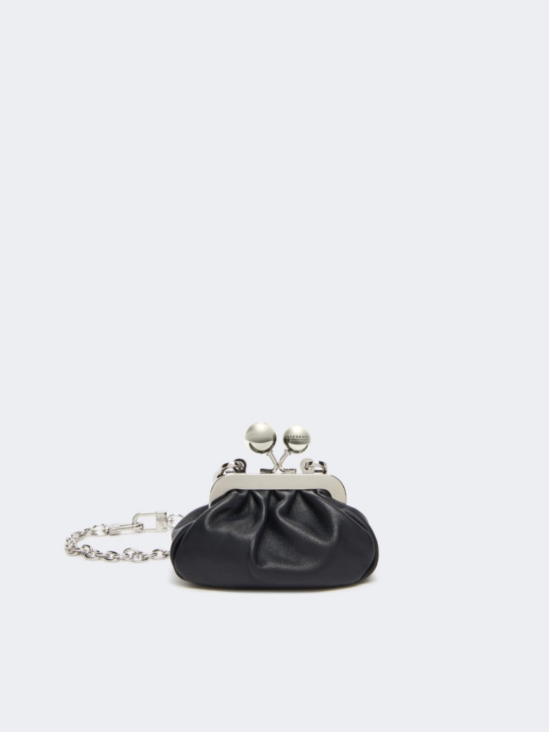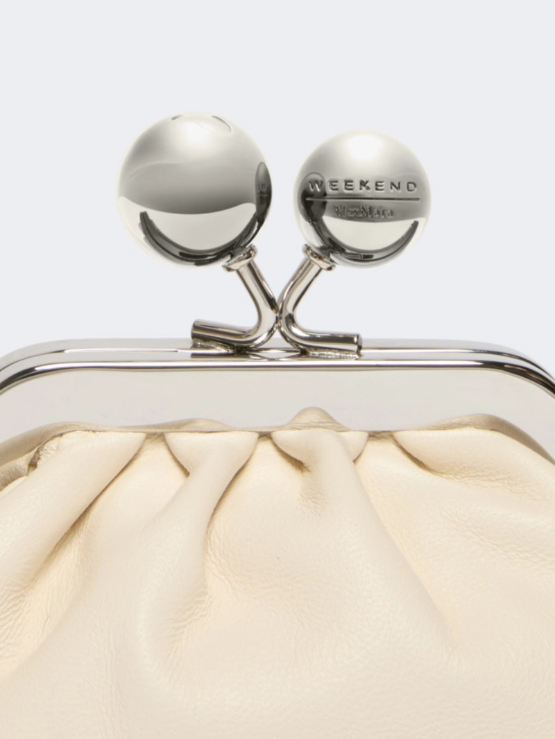 Nano Pasticcino 皮包,背面配有搭扣,可輕鬆連接至他款 Weekend Max Mara 手袋。 附有兩條可拆卸扣環的肩帶:一條長肩帶和一條短肩帶。 納帕羊皮手袋,條紋斜紋布內襯,飾有品牌標籤。 採用吻鎖扣設計,飾有品牌不對稱球形裝飾。 尺寸:11 x 4.5 x 10 公分。