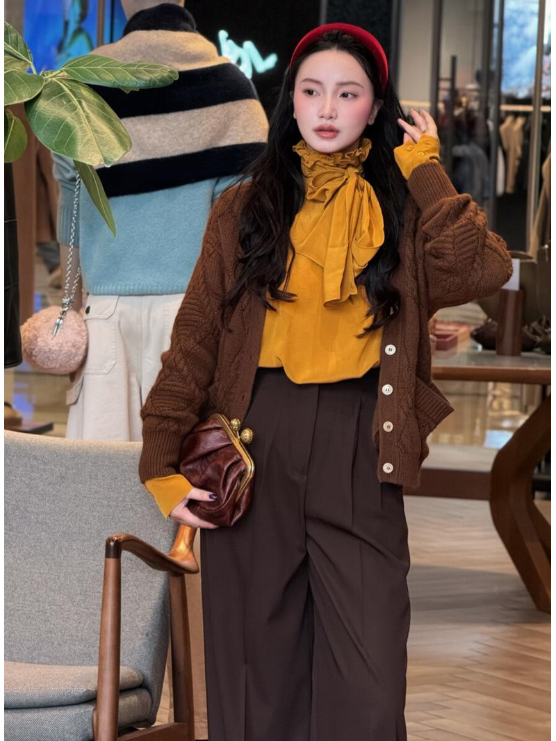 WEEKEND真絲木耳邊領泡泡袖襯衫