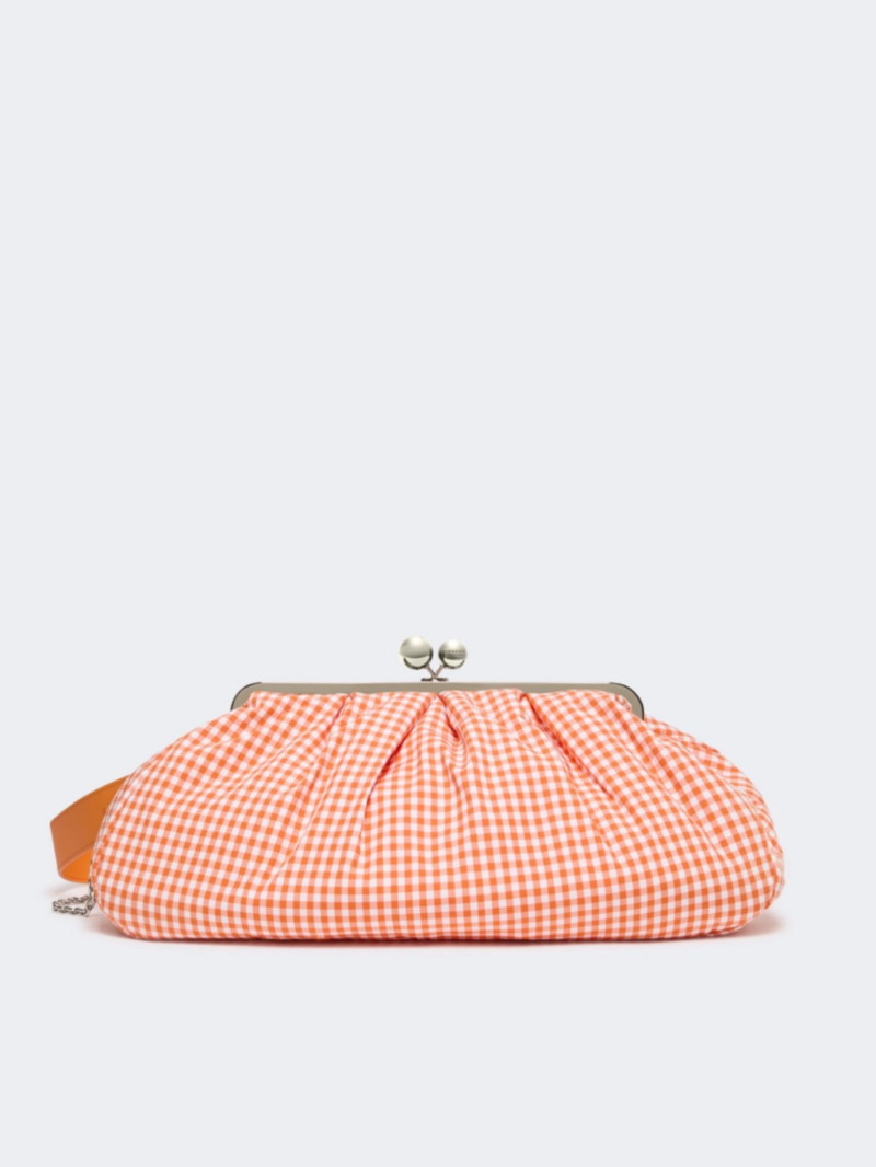 印花棉布包,同色系布料襯裡。 內建收納袋,飾有個人化標籤。 短版皮革肩帶和長鏈條肩帶,配有皮革肩墊。 雙肩帶設計:可肩背或腰挎。 金屬扣,飾有Weekend MaxMara 個性化球形扣。