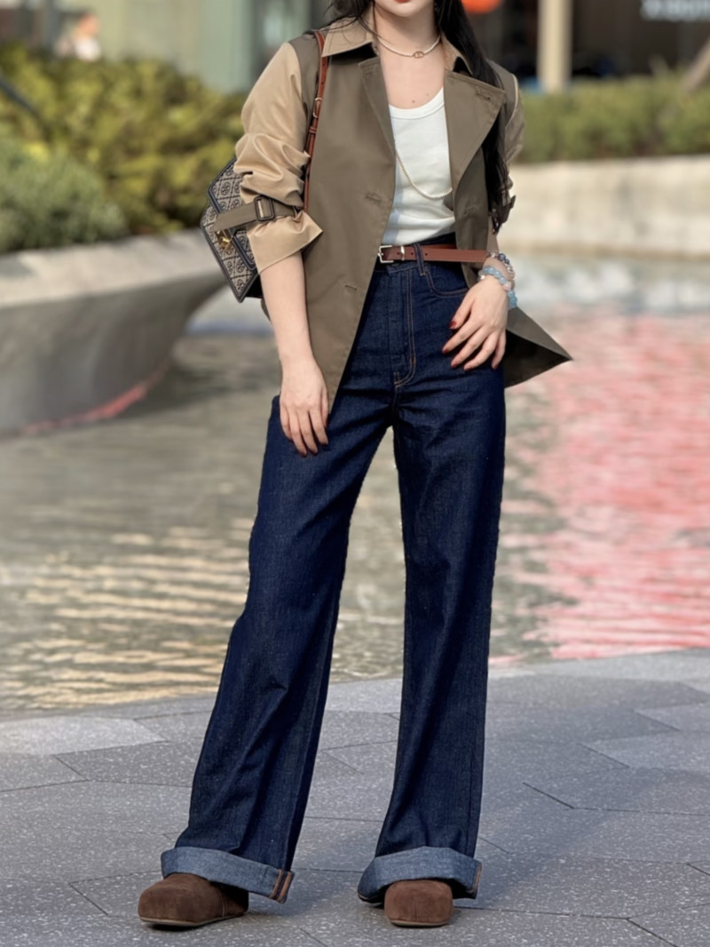 短版風衣,採用防水技術華達呢製成,喇叭形廓形,襯衫領,嵌入式袖口,袖口配有栓扣。 側邊有貼邊口袋,背部有中央開衩。 雙排扣閉合。 個性化 Weekend Max Mara 標誌印在軛的內襯上。
