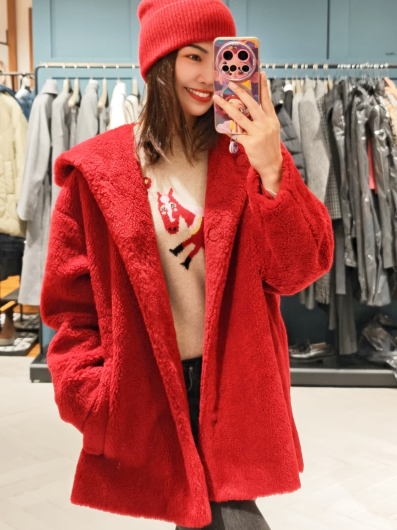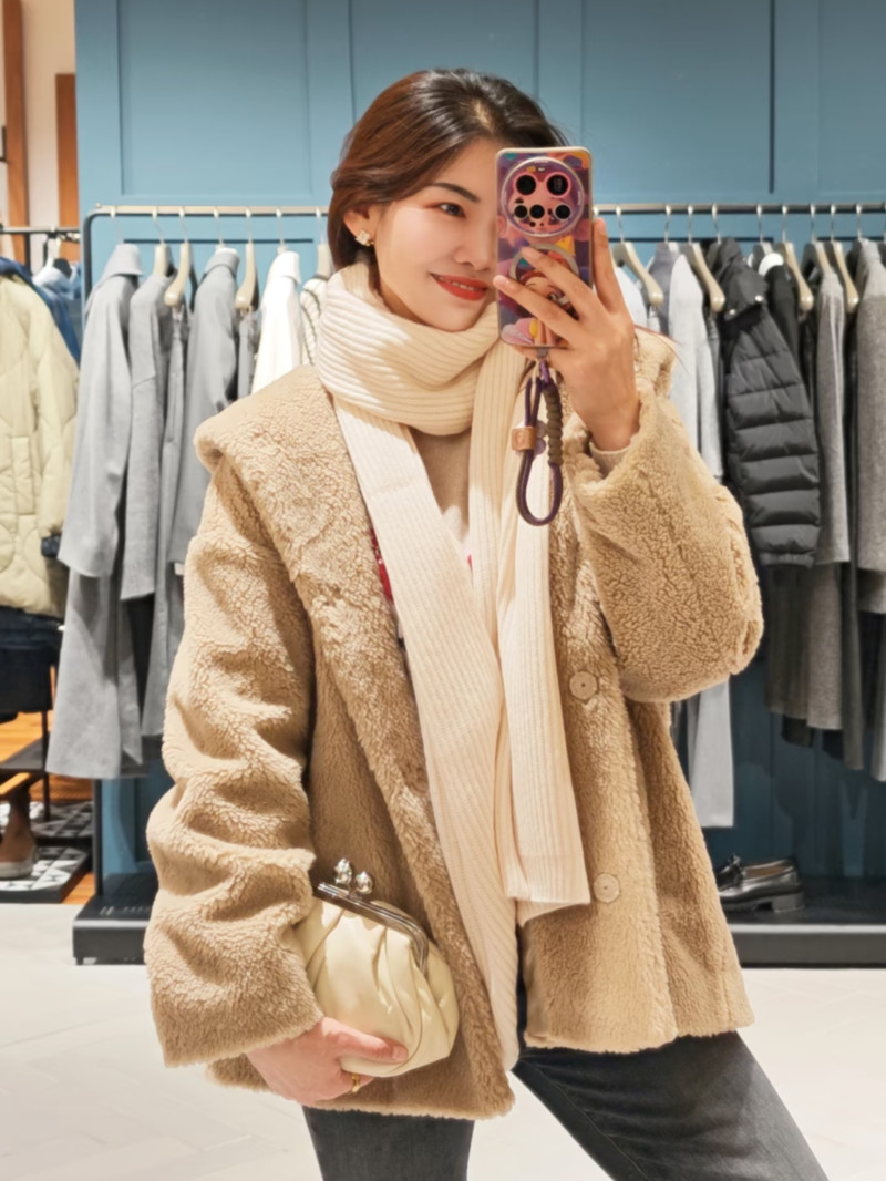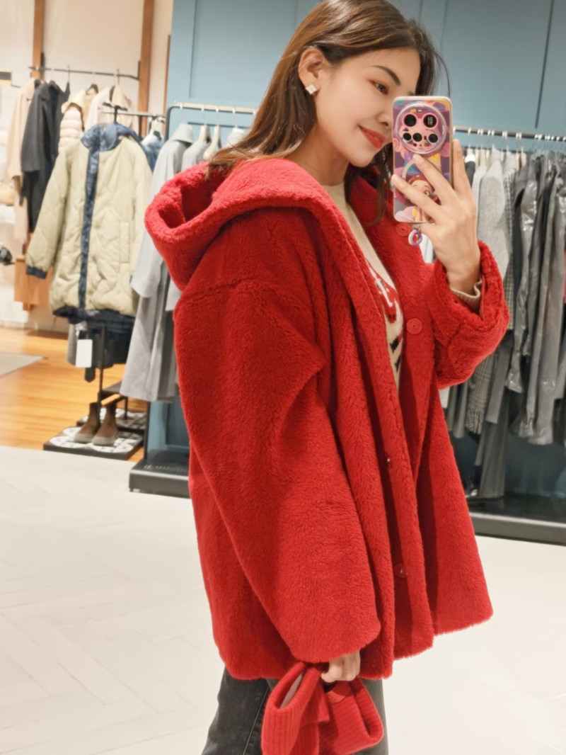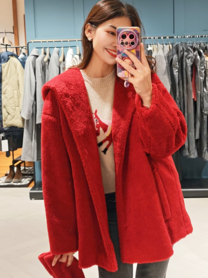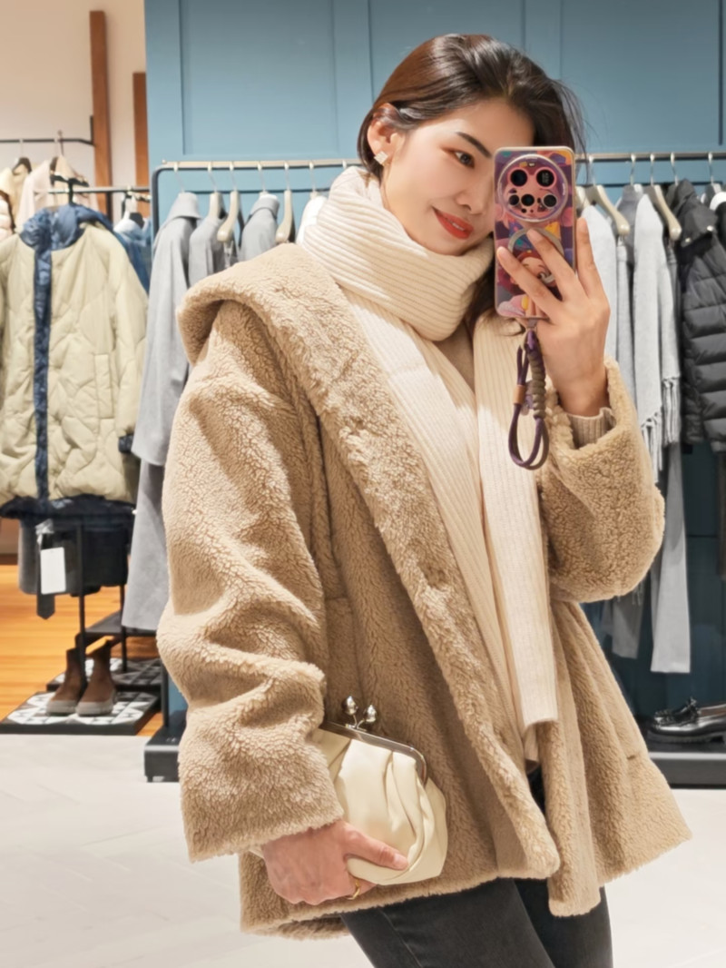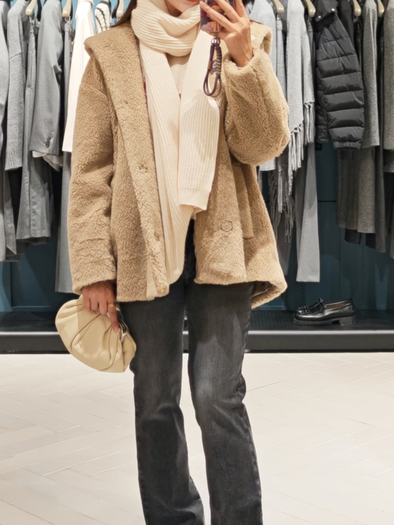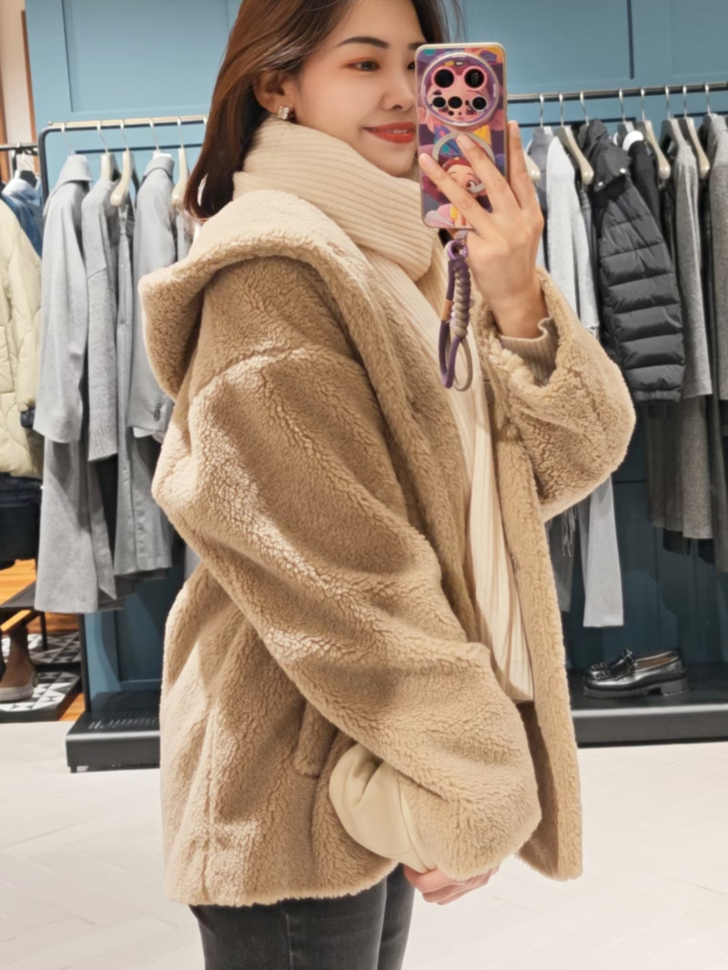 WEEKEND羊毛混紡泰迪熊連帽外套