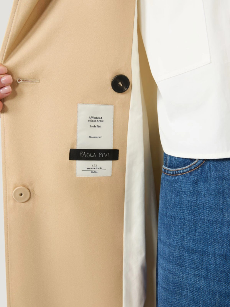 「與藝術家共度週末」系列:Paola Pivi 重新詮釋了標誌性的Weekend MaxMara 風衣,將其化身為一件可穿戴的藝術品。